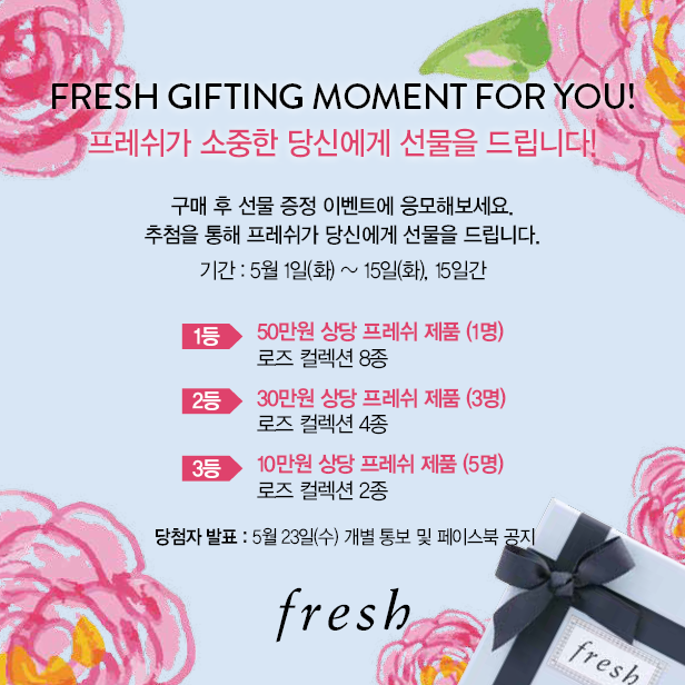 15일까지 매장에서 사는 사람 한정으로 참여할 수 있는 선물증정이벤트두 있대요 5월에 선물할 일 많으신 분들 프레쉬가보시면 좋을듯요 ㅋㅋ