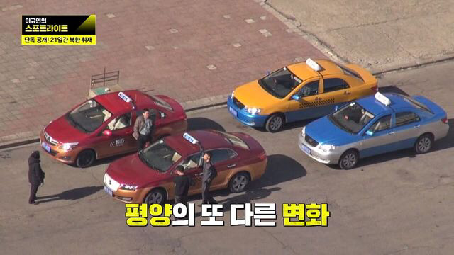 평양의 택시 기본 요금은 (2km 주행에) 2달러이고 1km당 50센트씩 요금이 가산되고 외화 결제만 되는것, 일반 택시 등 종류가 몇개 있다고 하긔 ㅋㅋ평양시내에만 택시가 6천대가 있다고 하긔!