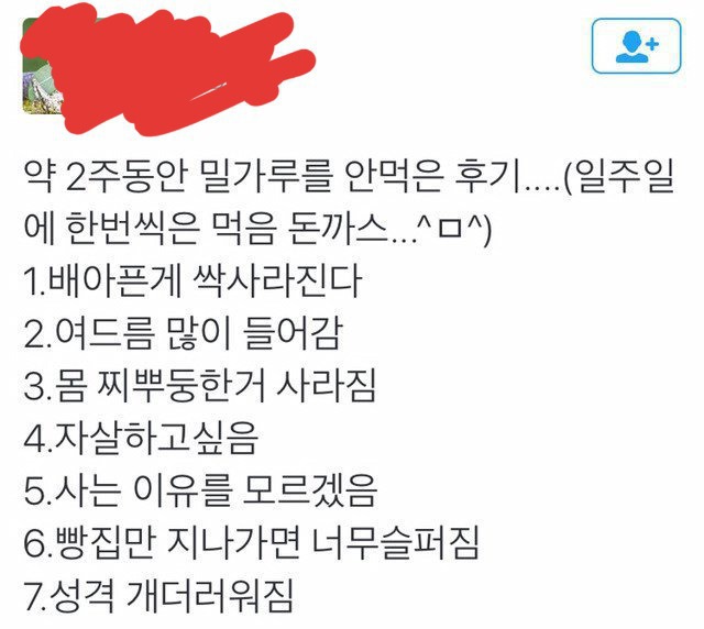 일주일동안 밀가루 안먹은 후기